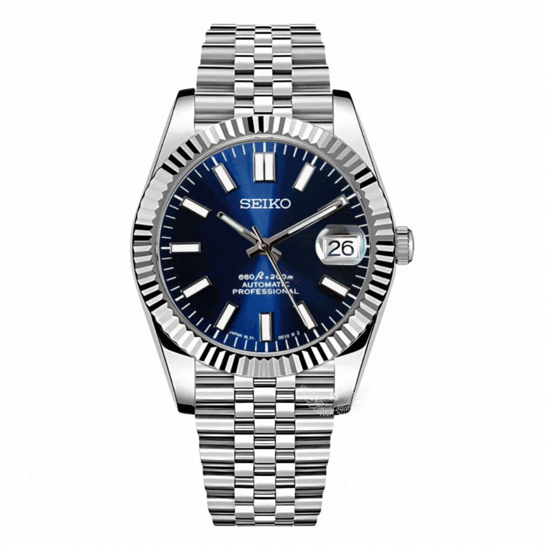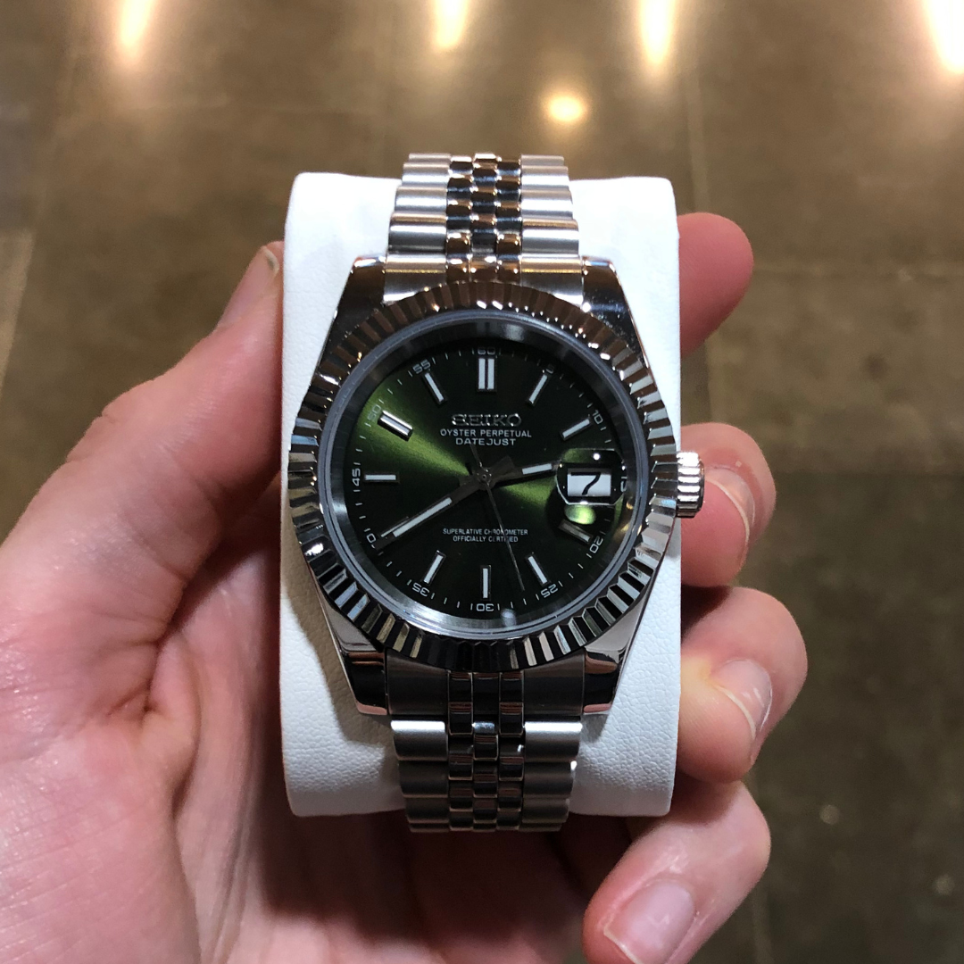A Seiko Mod is a special watch hand-assembled from a prestigious Seiko automatic movement, combined with high-quality aftermarket parts, usually made of 316L stainless steel.